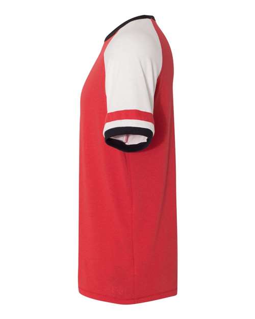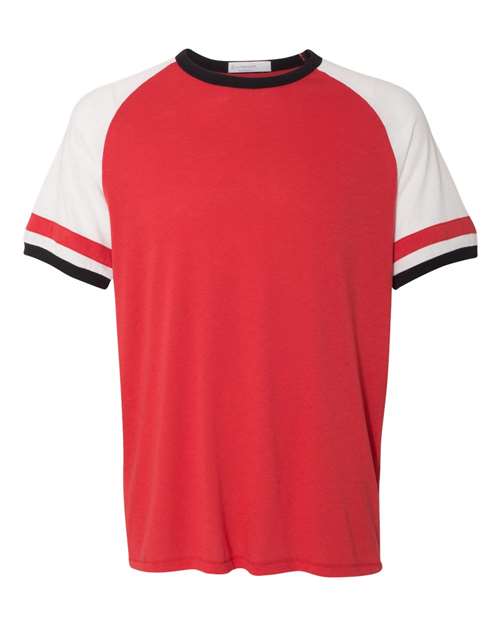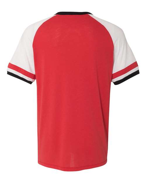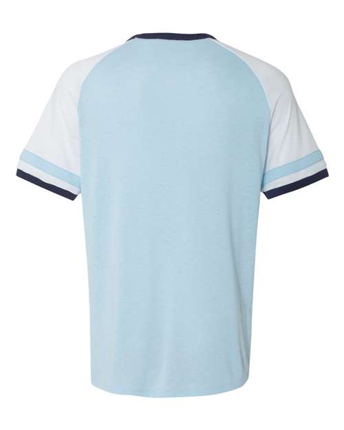 - Vintage athletic details on raglan sleeves