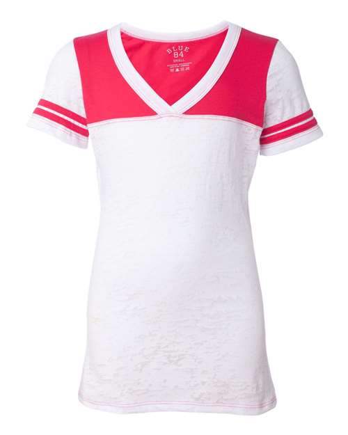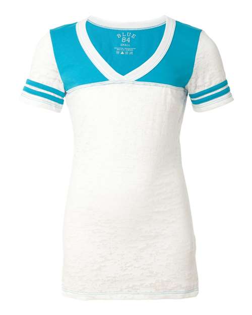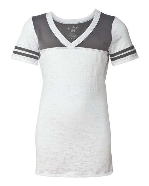 Blue 84 USA-Made Juniors' Burnout V-Neck Football Tee JBV