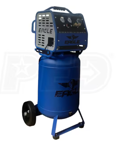 Silent Eagle 2-HP 20-Gallon Air Compressor: Quiet operation with powerful performance, ideal for pad printing applications.