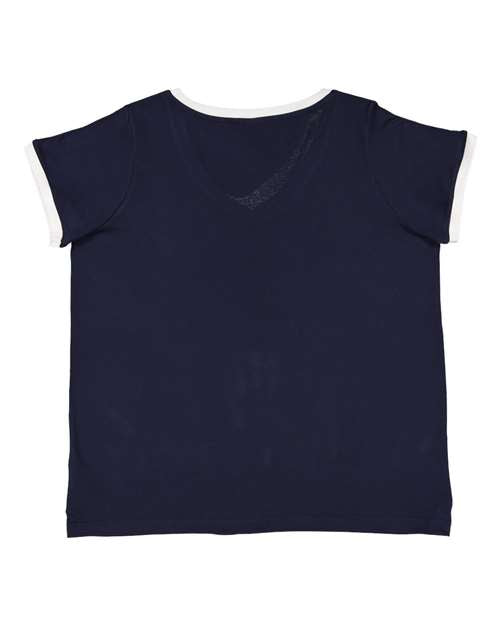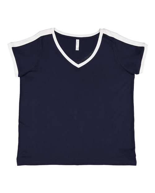 LAT Women's Curvy Retro Ringer Premium Jersey V-Neck Tee 3832