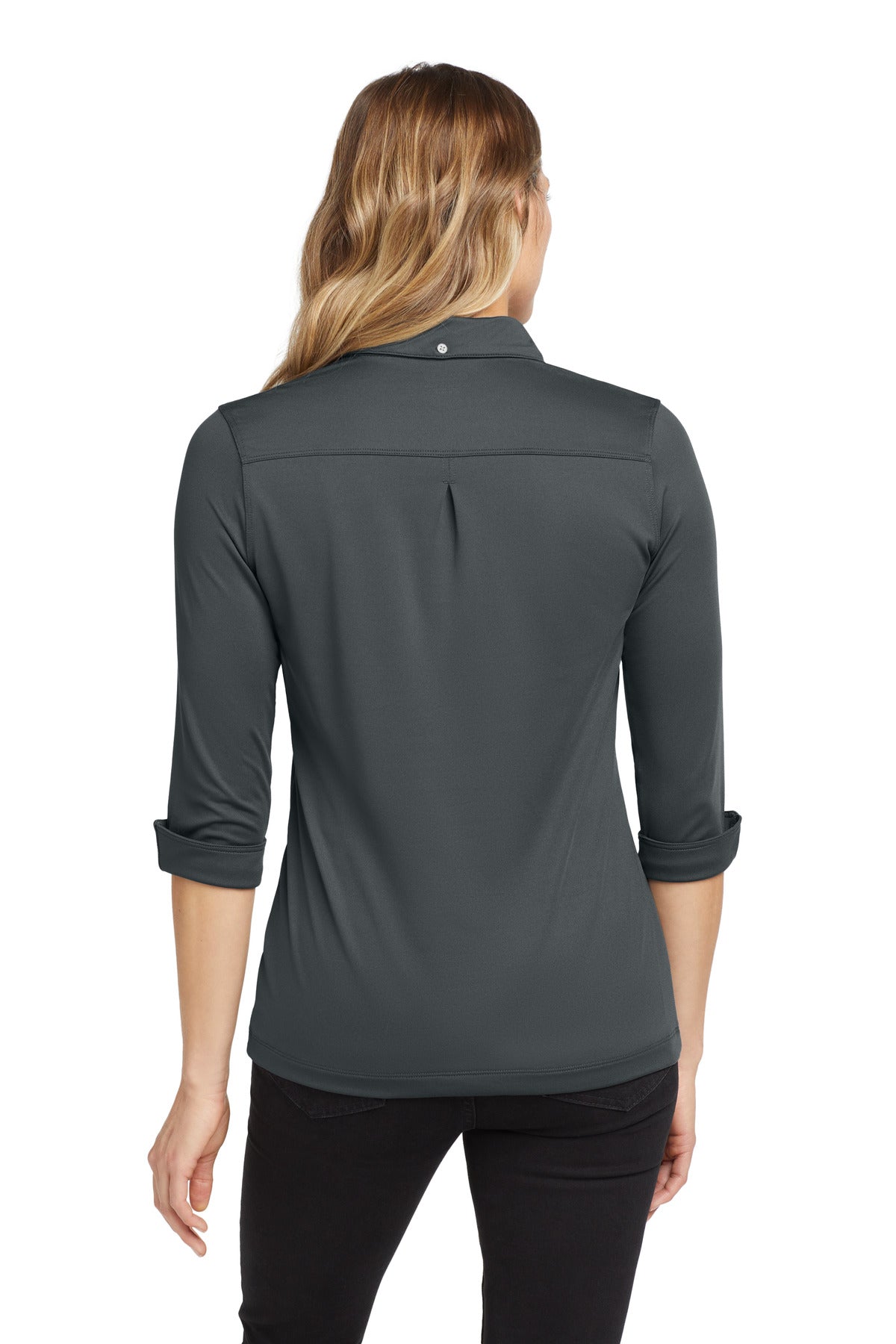 Break away from the ordinary in this button-down style that features cuffed 3/4 sleeves. | 5.9-ounce, 94/6 poly/spandex jersey with stay-cool wicking technology OGIO heat transfer label for tag-free comfort Self-fabric rounded button-down collar with collar stand 7-button placket with metal buttons Pleat at back yoke Button on back of collar Double-needle stitching detail throughout Set-in,open hem sleeves Cuffed 3/4-sleeves with metal buttons Heat transfer OGIO badge at hem