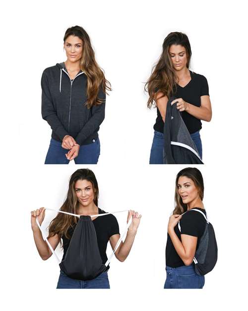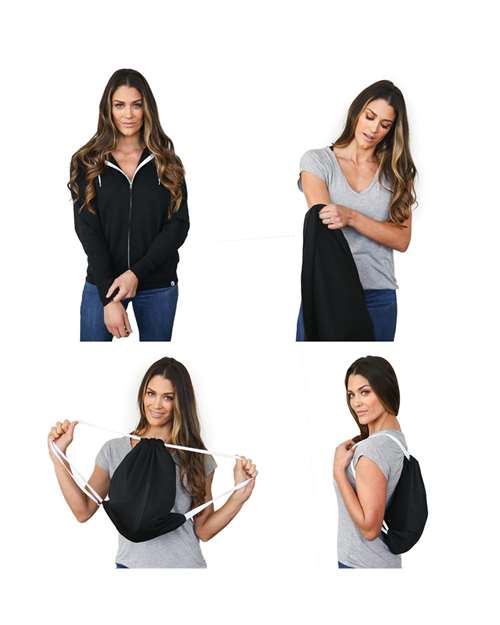 - Patented 2-in-1 hoodie converts into functional drawstring backpack in seconds